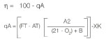 ? : Yanma verimi qA : Baca gazı kaybı FT : Baca gazı sıcaklığı AT : Ortam sıcaklığı A2/B : Yakıta özel katsayılar O2 : Ölçülen oksijen XK : Yoğuşma sıcaklığına ulaşılamadığında qA’in "-" değer aldığını belirten katsayıdır. Yoğuşmalı sistemler için önemlidir. Yoğuşma sıcaklığının altına inilmediyse XK=0.