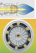 deliklerden geçerek dağılır; yakıtın bir kısmı ise doğrudan alevin orta kısmından püskürtülür. Yeni nesil brülörde kullanılan yanma başlığı Bu yanma sonucunda NO oluşumunu engelleyen düşük sıcaklıkta alev elde edilir. Alev içinde ileriye doğru giderek artan yanma alevin içinde yüksek oranda oksidasyon olan alanların oluşmasını önler.Yanma emisyonları, yanma gazlarının yanma başlığını yüksek hızla terk etmesi ile sağlanan resirkülasyon ile bir kademe daha düşürülür ve sonuç; en ileri standartların altında emisyon seviyesi veren bir yanmadır. Ayrıca bu yeni nesil yanma başlığının ayar sistemi modülasyon sırasında karışımın mükemmel olmasını sağlayarak hem gürültü hem de emisyon seviyelerini düşürür. Bu brülörlerde hava ayarını yapan servo motorundan alınan mekanik bir bağlantı aynı zamanda yanma başlığının da ayarını yapar ve bu son derece basit ayar düzeneği başlığın iç geometrisini brülör kapasitesine uyumlu hale getirir. Sistem tüm modülasyon aralığında mükemmel yakıt-hava karışımı sağlar.
