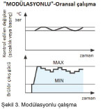 rlanan çalışma aralığı içinde çıkış gücünü talep edilen yüke göre ayarlayarak sürekli gereken yüke göre çalışır. Brülörün her durmasında yapısı ve brülör standartları gereği 25-100 sn arasında ön süpürme yapar. Bu işlem kazan veya ocağı/fırını, dolayısıyla içindeki malı da soğutur. Bu nedenle, özellikle sanayide, modülasyonlu brülör talebi artmaktadır.Sistem elemanları birbirleriyle bir bus sistemi vasıtasıyla bağlıdır. Bağımsız bus kullanıcıları arasındaki iletişim sistem esaslı güvenilir bir data-bus sistemiyle sağlanır. Sistemin emniyetle ilgili tüm dijital çıktıları sürekli olarak kontakların geri beslemesini yapan bir ağ ile kontrol edilir.Hava ve yakıtı ayarlayan donanımlarının bağlantıları yanma parametrelerinin sürekliliğini korumak üzere arada herhangi bir bağlantı boşluğuna veya mekanik geri kaçmaya imkân vermeyen yapıdadır. Bunun sonucu olarak, yanma sisteminin mevsimsel verimi yükseltilmiş ve emniyetli bir çalışma sağlanmış olur. İlave olarak, dijital kontrol ve kullanıcı ara yüzü sayesinde brülörün çalışma durumu ve meydana gelen arızaların geçmişiyle arıza tanıma fonksiyonları da elde edilir.